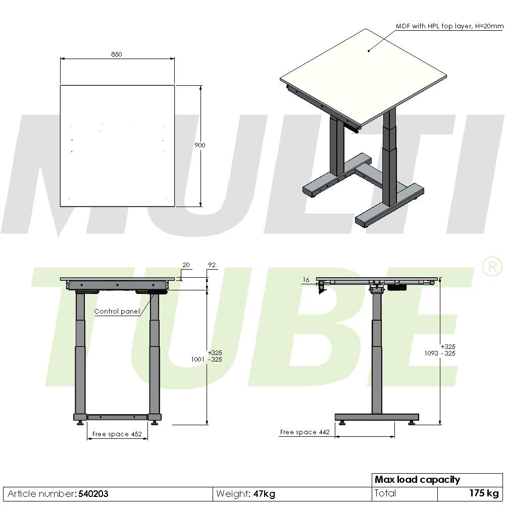 Elektrisch verstellbare Arbeitsstation, 850x900mm