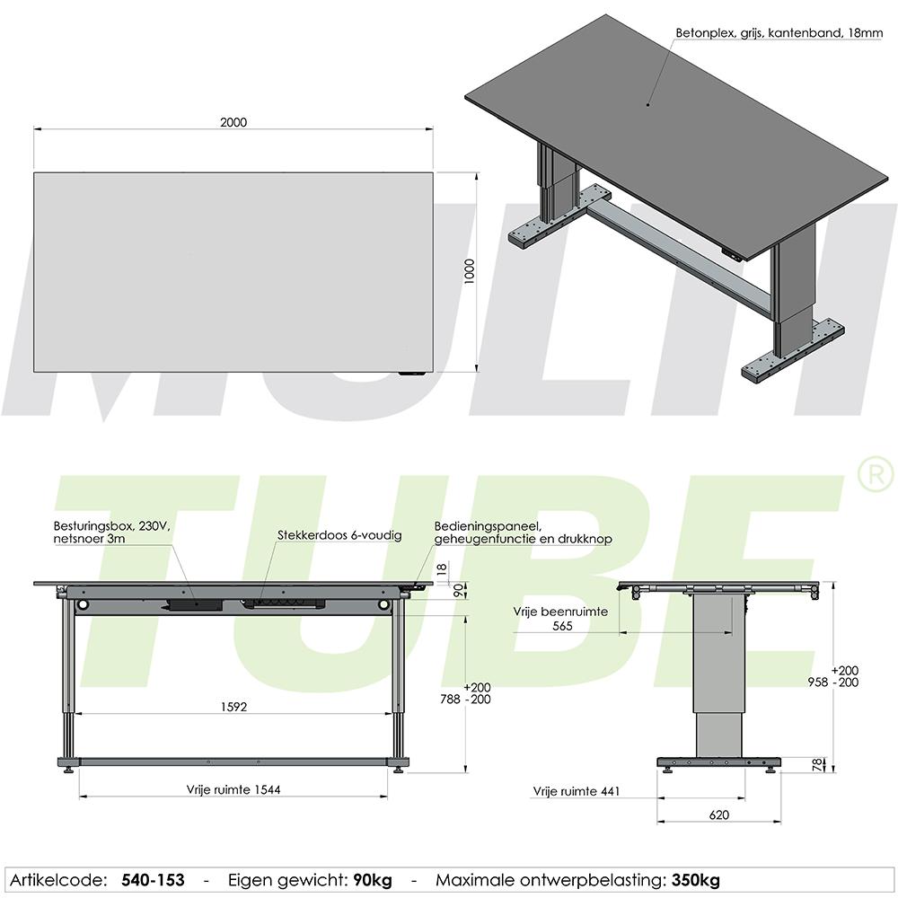 Elektrisch verstellbarer Arbeitstisch, 2000x1000mm