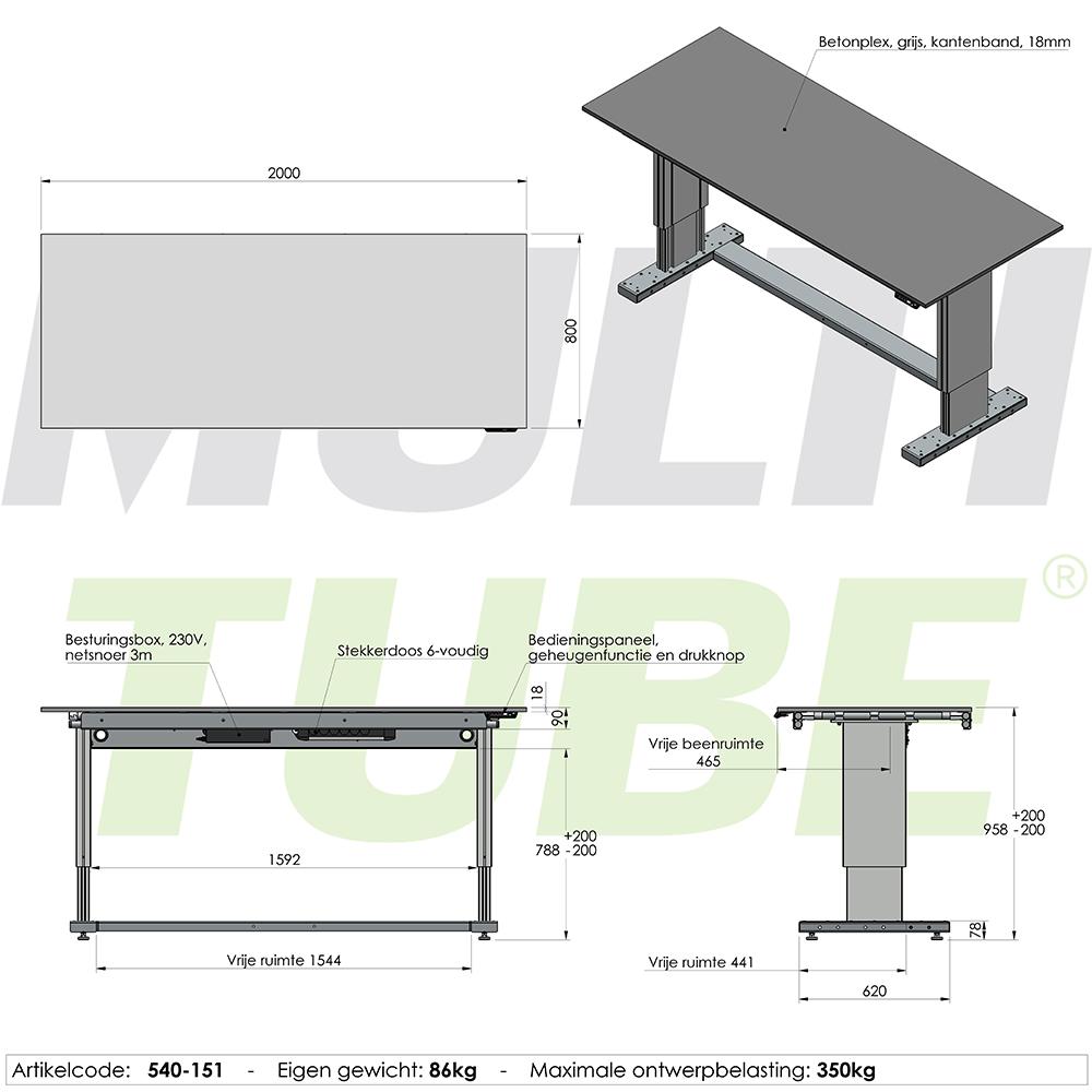 Elektrisch verstellbarer Arbeitstisch, 2000x800mm