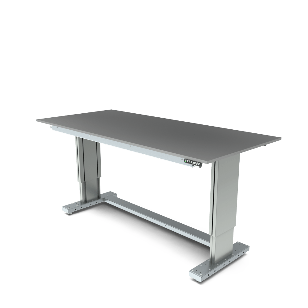 Dank der robusten industriellen Hubsäulen verfügt der Tisch über eine beeindruckende Tragfähigkeit von 350 kg.