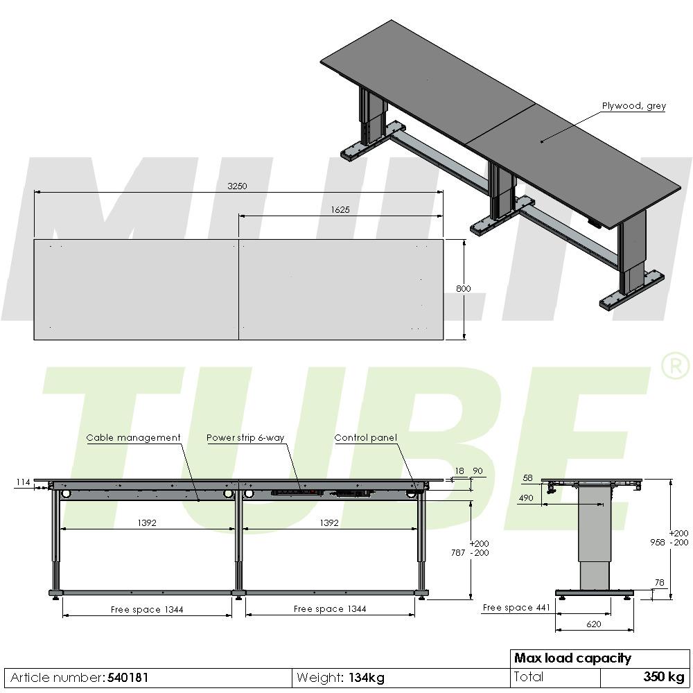 Elektrisch verstellbarer Arbeitstisch, 3250x800mm