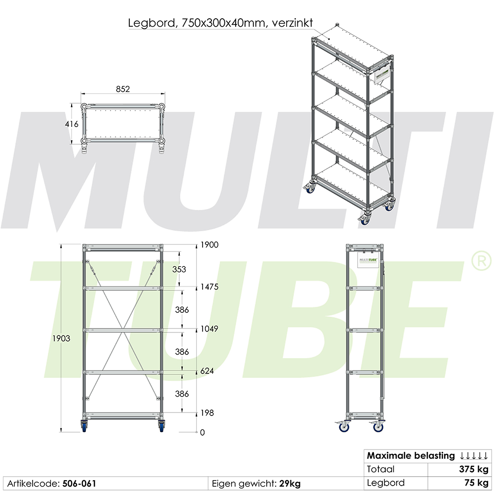 Unsere mobilen Regalregale werden standardmäßig mit 5 Regalbrettern geliefert. Die Regalbretter sind 40 mm hoch und können optional mit Etikettenhaltern ausgestattet werden.