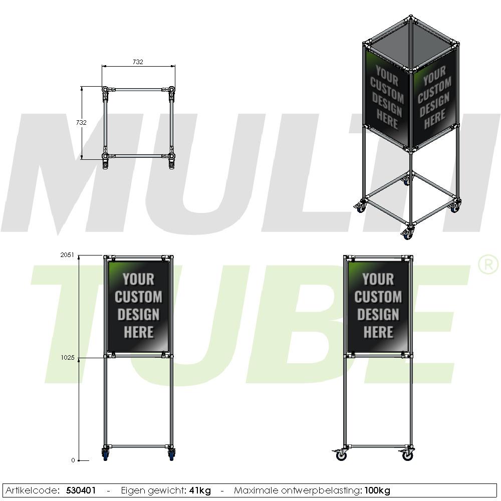 Fahrbare Whiteboard-Säule bedruckt, 60x90cm