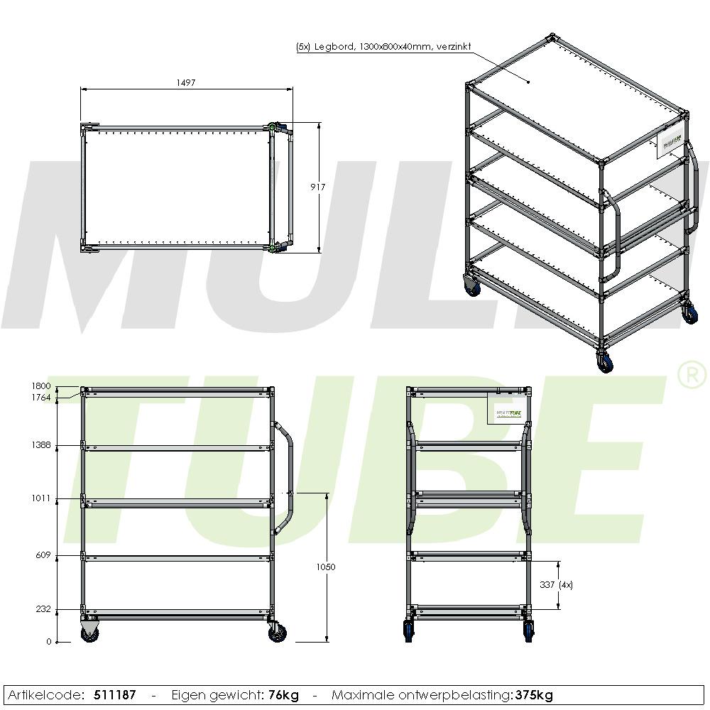 Die stabile Konstruktion ermöglicht den sicheren Transport schwerer Produkte. Darüber hinaus ist der Wagen modular aufgebaut, sodass die Anzahl der Fachböden einfach angepasst werden kann und zusätzliches Zubehör, wie Halterungen für Scanner, Tablets oder Becher, hinzugefügt werden kann. So lässt sich der Wagen vollständig auf Ihren spezifischen Arbeitsprozess abstimmen.