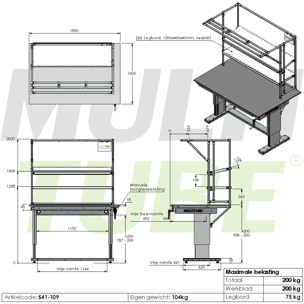 Manuell verstellbare Arbeitsstation, 1500x1000mm