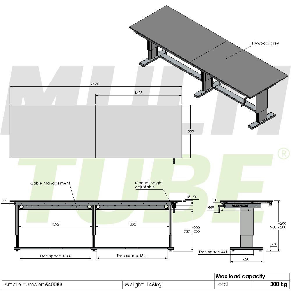 Manuell verstellbarer Arbeitstisch, 3250x1000mm