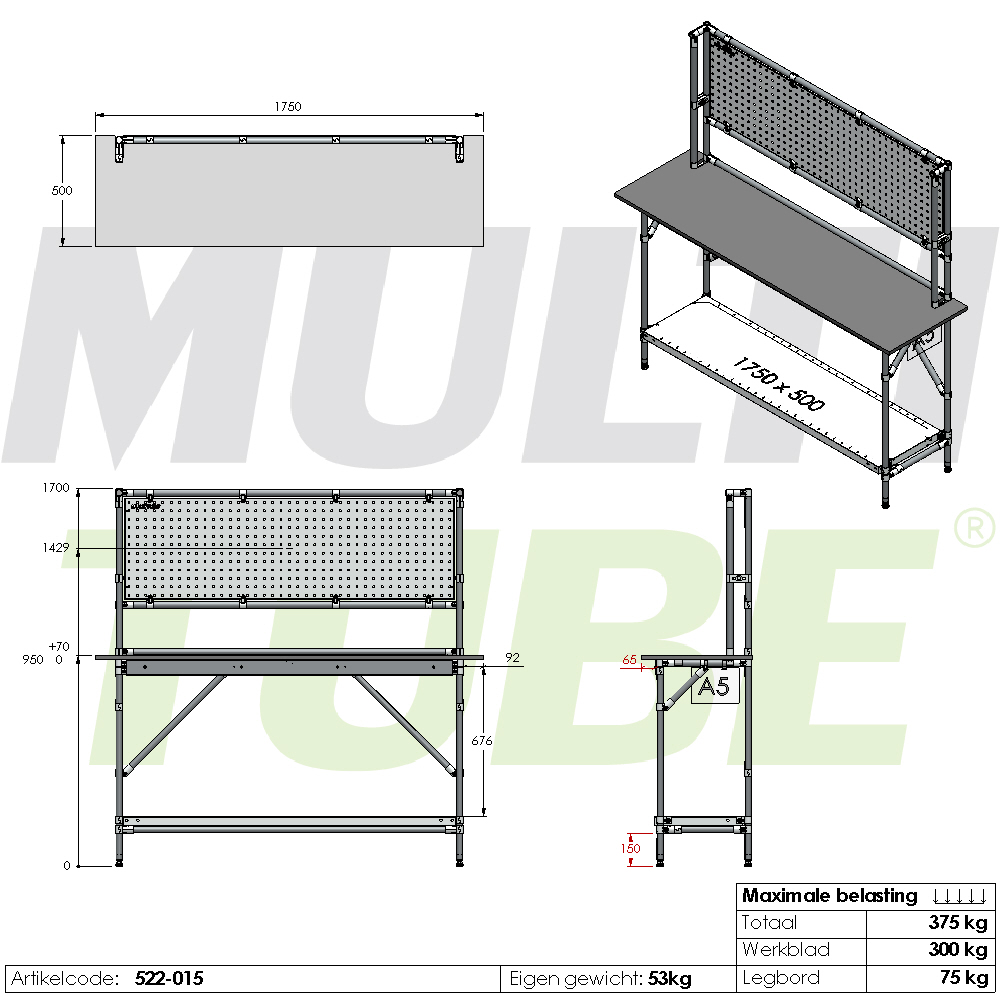 Montagetisch, 1750x500mm
