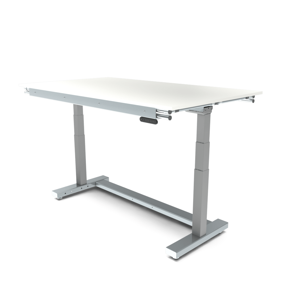 With the control panel and memory function, you can easily set your ideal working height. The worktop has an adjustment range of 650 mm, allowing heights between 768 mm and 1418 mm, so you can adapt the table to different users and working positions.