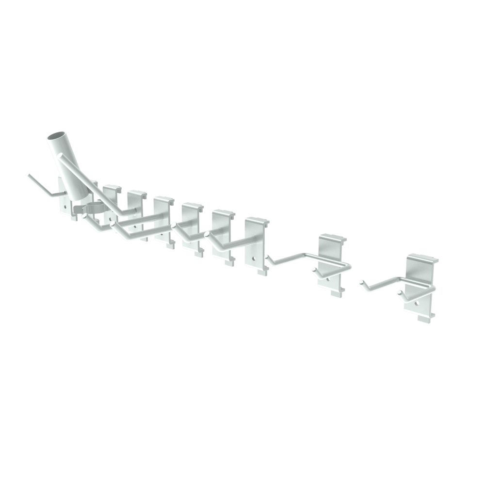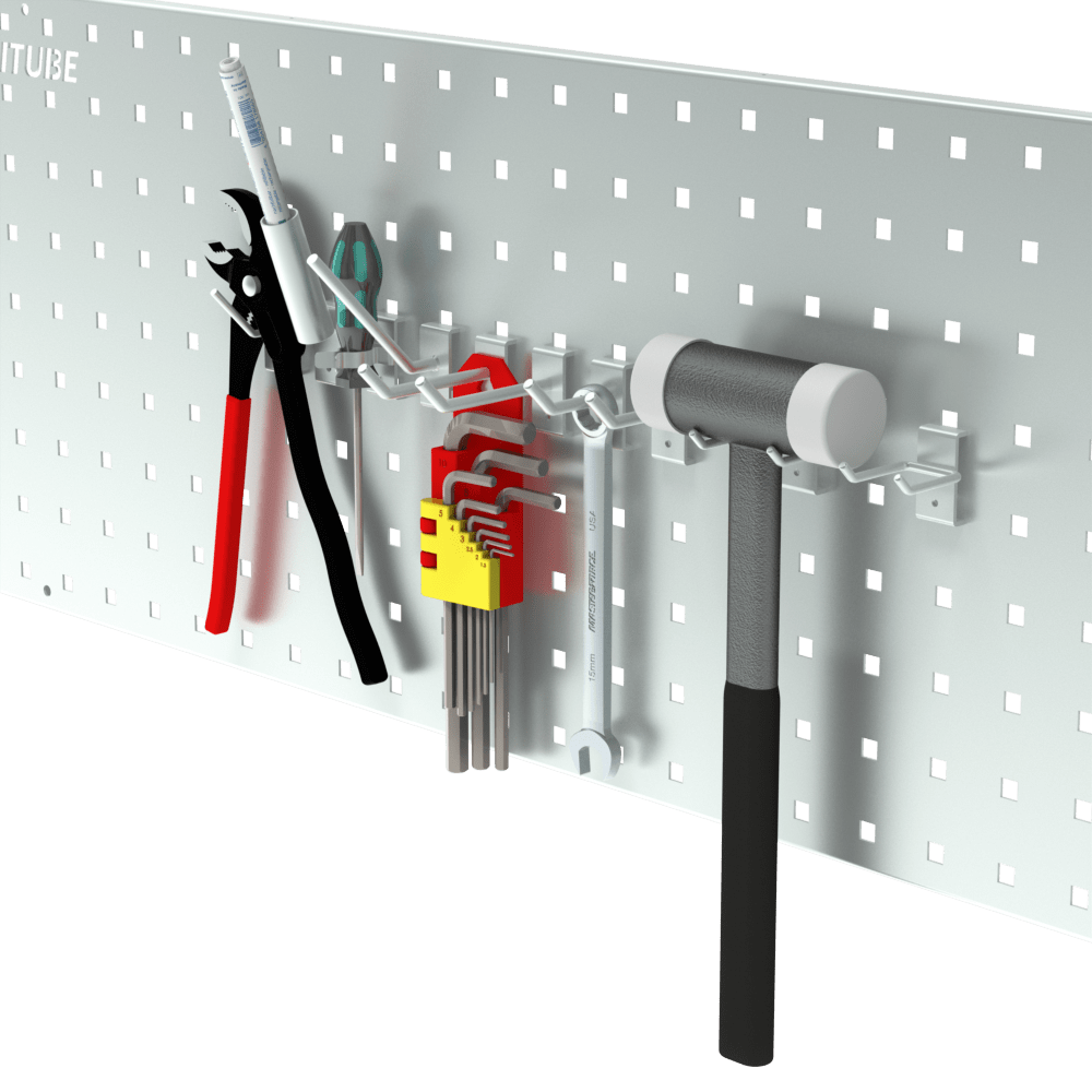 With the equipment tool board S, you can easily create an orderly and tidy workplace. This complete set of various tool hooks is put together for efficiently hanging tools and organising your workspace.