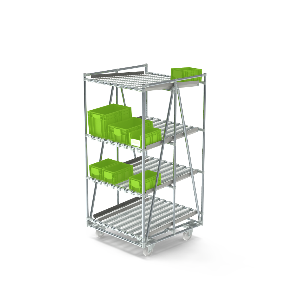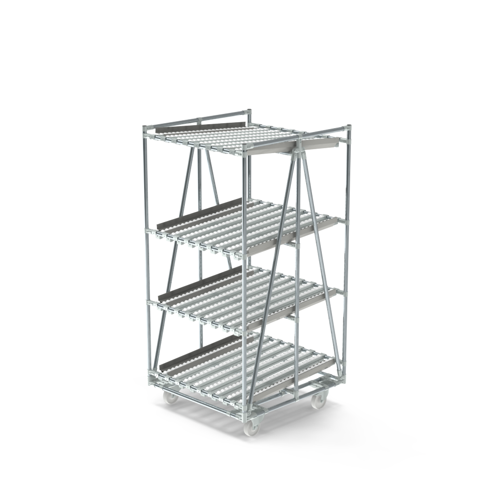 With our online configurator, you easily customise your flow rack: choose the number of levels, select the desired roller track width, and decide whether or not to include a return level. This way, you can design a rack that fits your needs perfectly.
