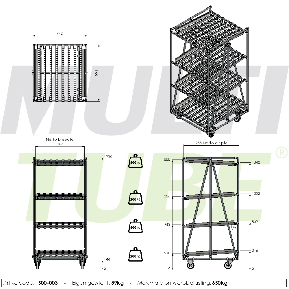 Flow rack mobile, straight, 849x958mm