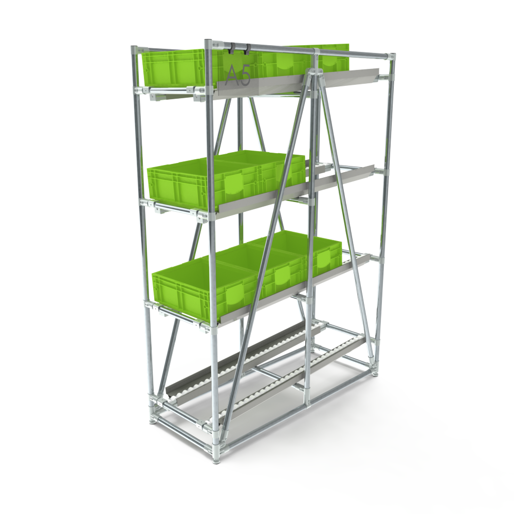 With our online configurator, you easily customise your flow rack: choose the number of levels, determine the required lane width and select whether you want a return level or not. This way, you can design a rack that fits your needs perfectly.