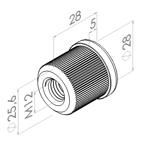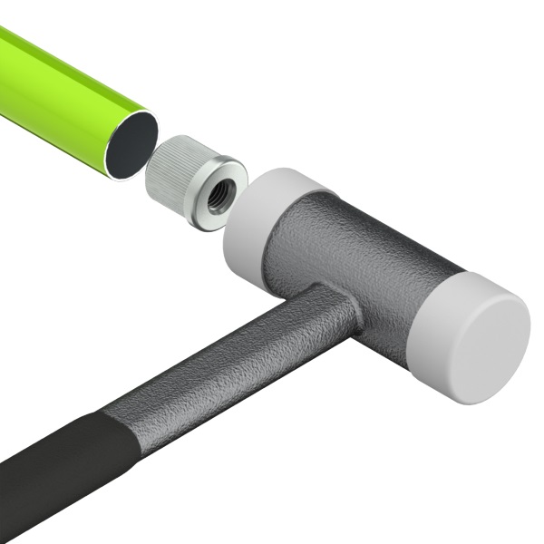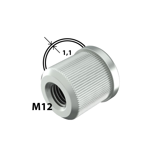 These insert nuts are pressed into our tubes for various applications. One such application is mounting a bolt hole castor in a tube, creating an M12 thread in the tube. This insert nut is made of stainless steel and is compatible with our tube with a wall thickness of 1.1 mm.