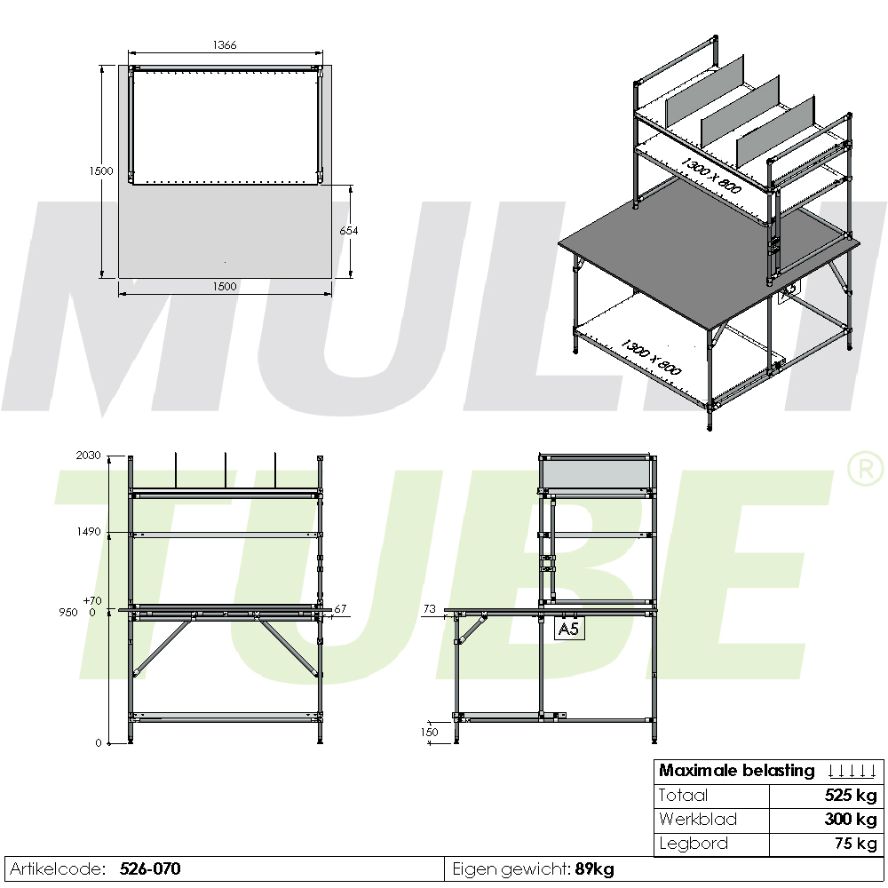 Both above and below the worktop, you’ll find a strong shelf, ideal for storing boxes, bins, and other supplies. You can easily add multiple extra shelves for even more storage capacity. Each shelf can support up to 75 kilos, ensuring safe storage of components, tools, or packaging materials while keeping your workspace organised.