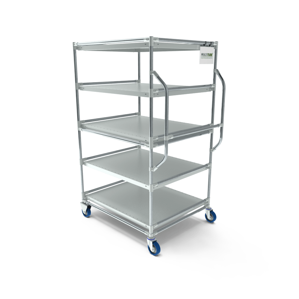 The trolley comes standard with five flat shelves, providing ample space to pick and transport products in an organised and safe manner. The ergonomic handles are designed to be comfortable for employees of different heights.