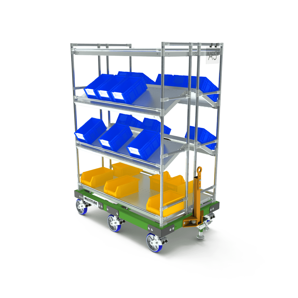 Optimise your internal logistics with our robust shelf cart for tugger systems. This cart is built using our Heavy Duty system, ensuring an exceptionally strong and stable construction. Thanks to this solid foundation, the shelf cart can withstand heavy loads and is perfectly suited for intensive use in production and logistics environments.