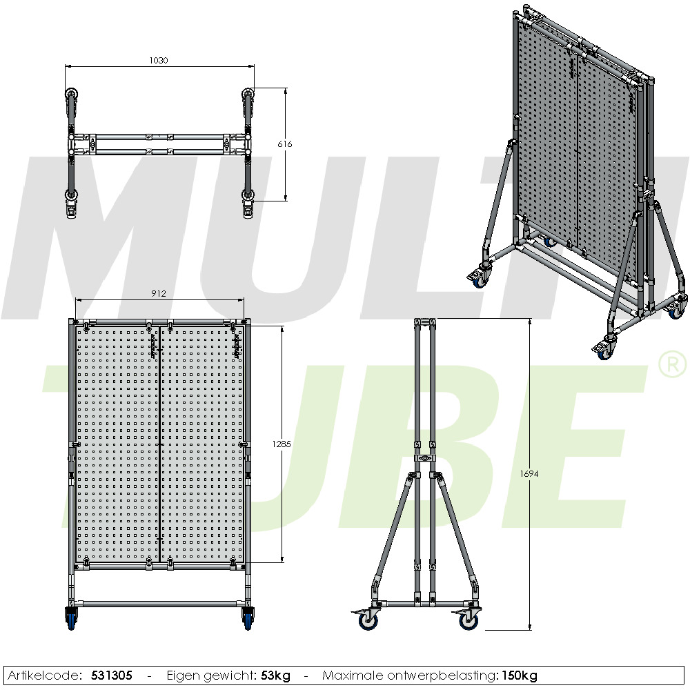 With the tool board on wheels, you always have all your tools within reach, wherever you are. The sturdy frames with braked industrial bolt hole wheels provide optimal mobility.