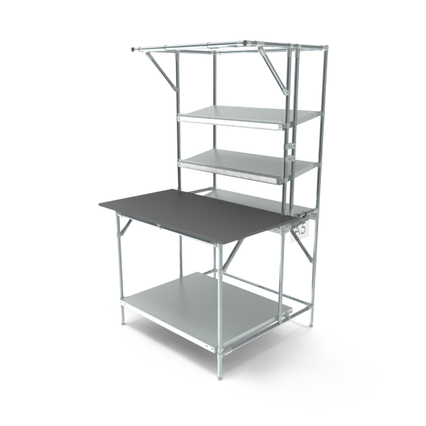 Make your production process smarter and more efficient with our assembly table. Thanks to its practical design with angled shelves, you always have a clear overview, and components and materials are immediately within reach. This allows you to work faster, more organised, and with greater ease.