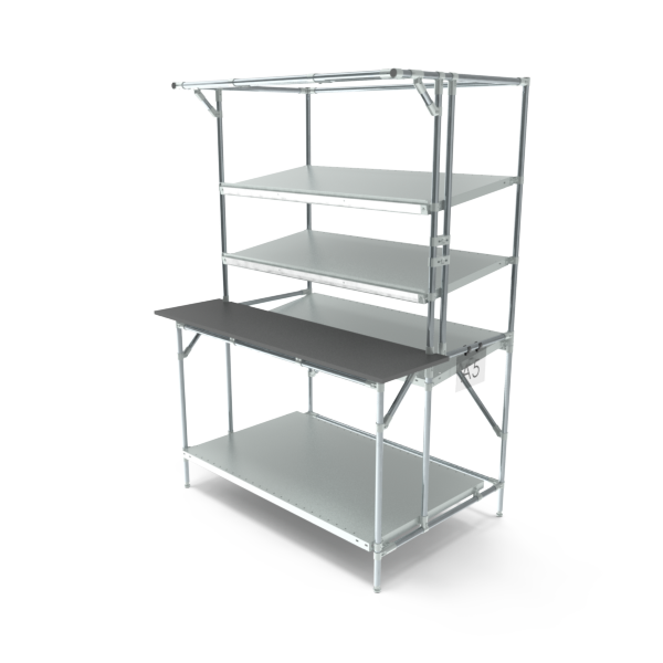 Make your production process smarter and more efficient with our assembly table. Thanks to its practical design with angled shelves, you always have a clear overview, and components and materials are immediately within reach. This allows you to work faster, more organised, and with greater ease.