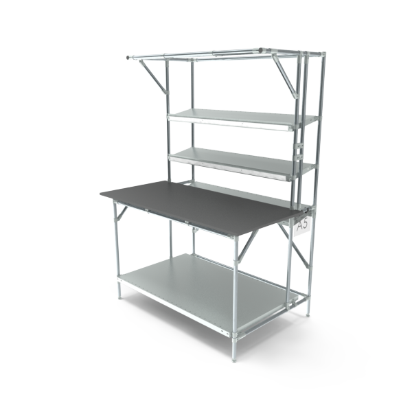 Make your production process smarter and more efficient with our assembly table. Thanks to its practical design with angled shelves, you always have a clear overview, and components and materials are immediately within reach. This allows you to work faster, more organised, and with greater ease.