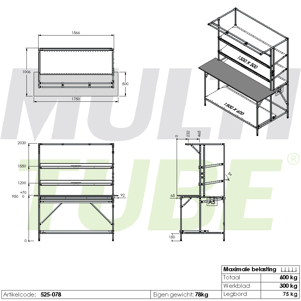 Make your production process smarter and more efficient with our assembly table. Thanks to its practical design with angled shelves, you always have a clear overview, and components and materials are immediately within reach. This allows you to work faster, more organised, and with greater ease.