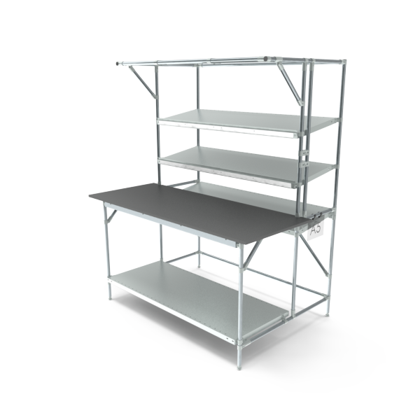 Make your production process smarter and more efficient with our assembly table. Thanks to its practical design with angled shelves, you always have a clear overview, and components and materials are immediately within reach. This allows you to work faster, more organised, and with greater ease.