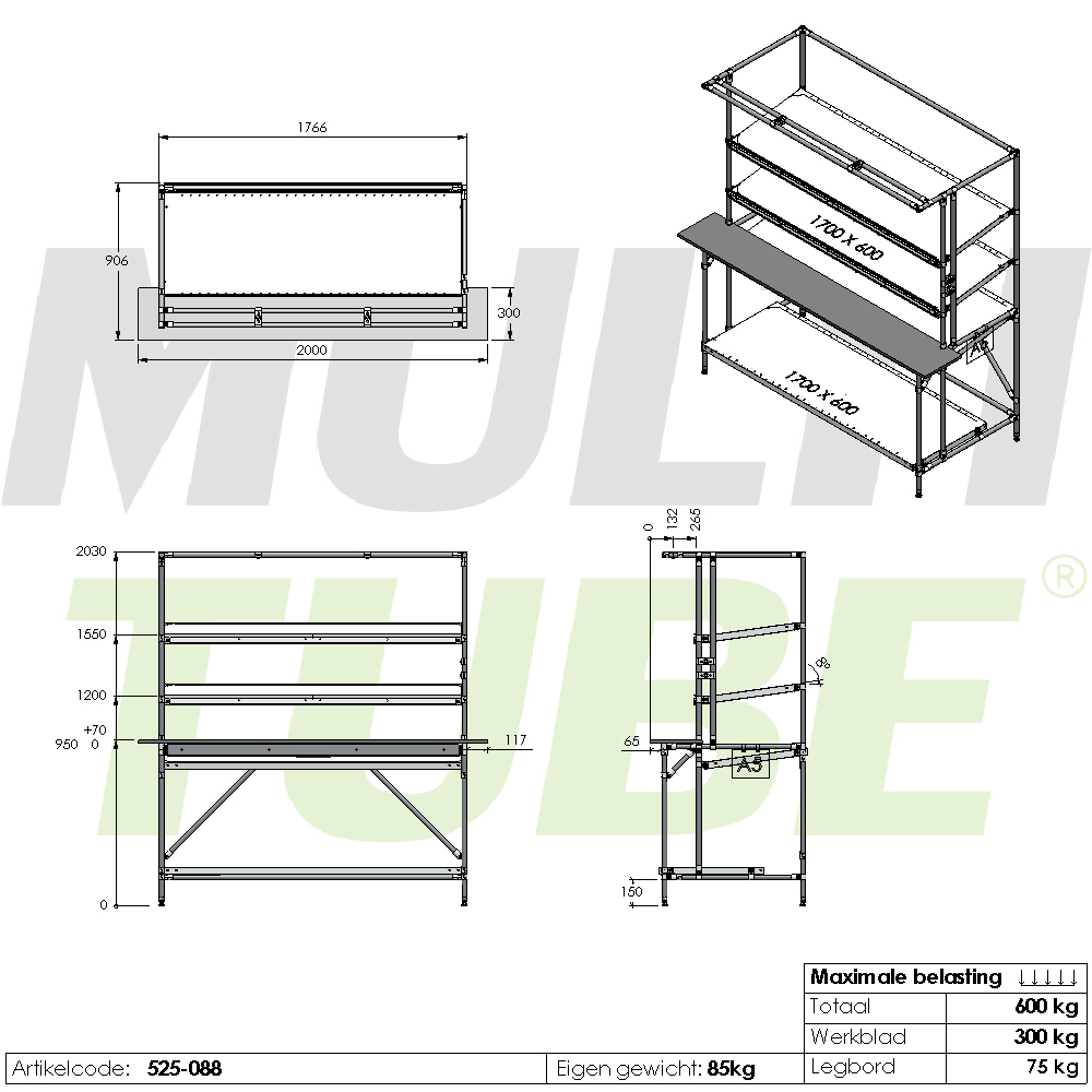 Make your production process smarter and more efficient with our assembly table. Thanks to its practical design with angled shelves, you always have a clear overview, and components and materials are immediately within reach. This allows you to work faster, more organised, and with greater ease.