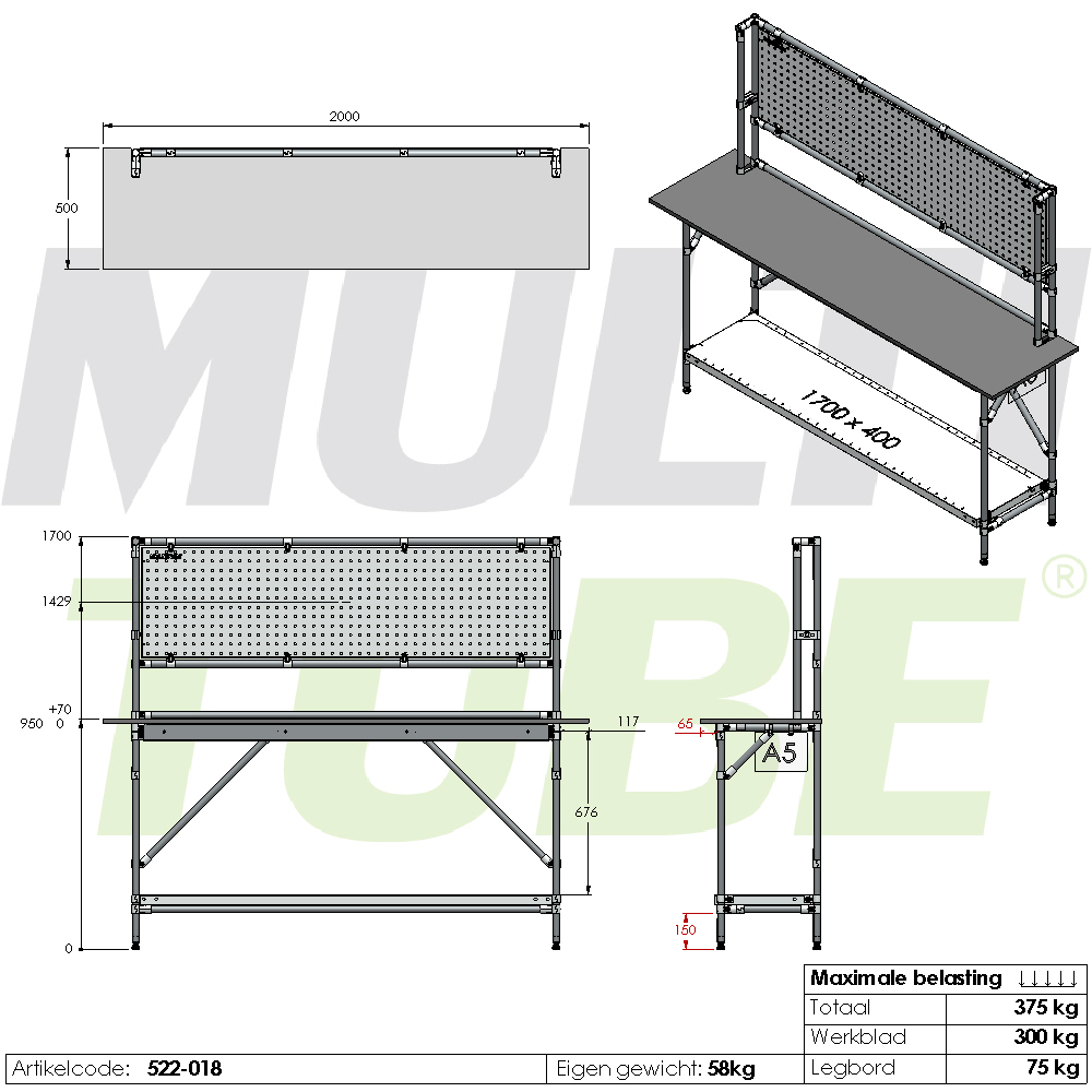 Under the worktop, you’ll find a sturdy shelf, with the option to add multiple extra shelves. Each shelf can hold up to 75 kilos, making it easy to store components, tools, or packaging materials.