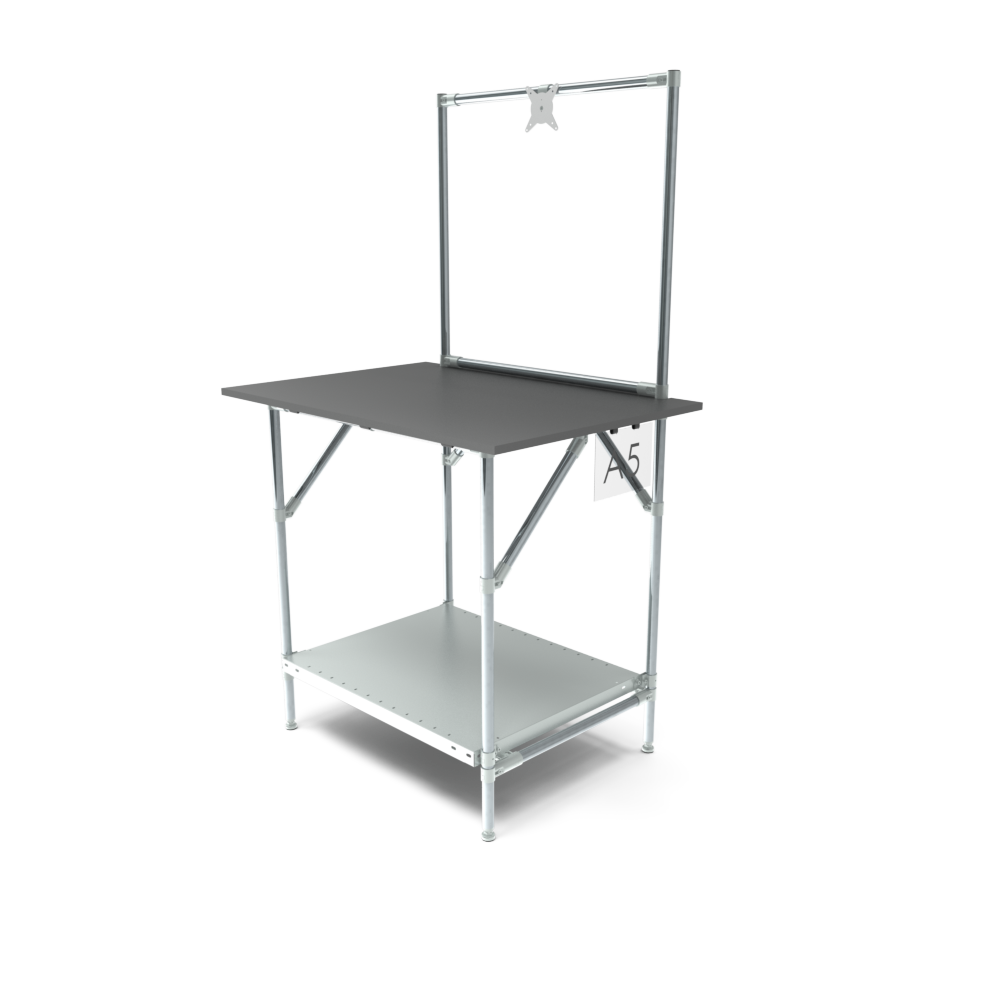 Het legbord onder het blad geeft je extra opbergruimte voor documenten, kabels of andere benodigdheden. Zo houd je je werkblad altijd netjes en overzichtelijk.