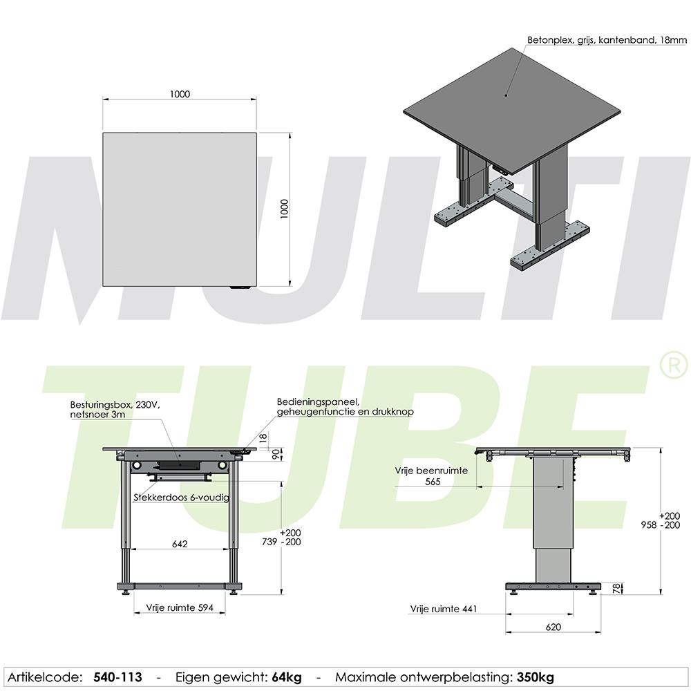 Elektrisch verstelbare werktafel, 1000x1000mm