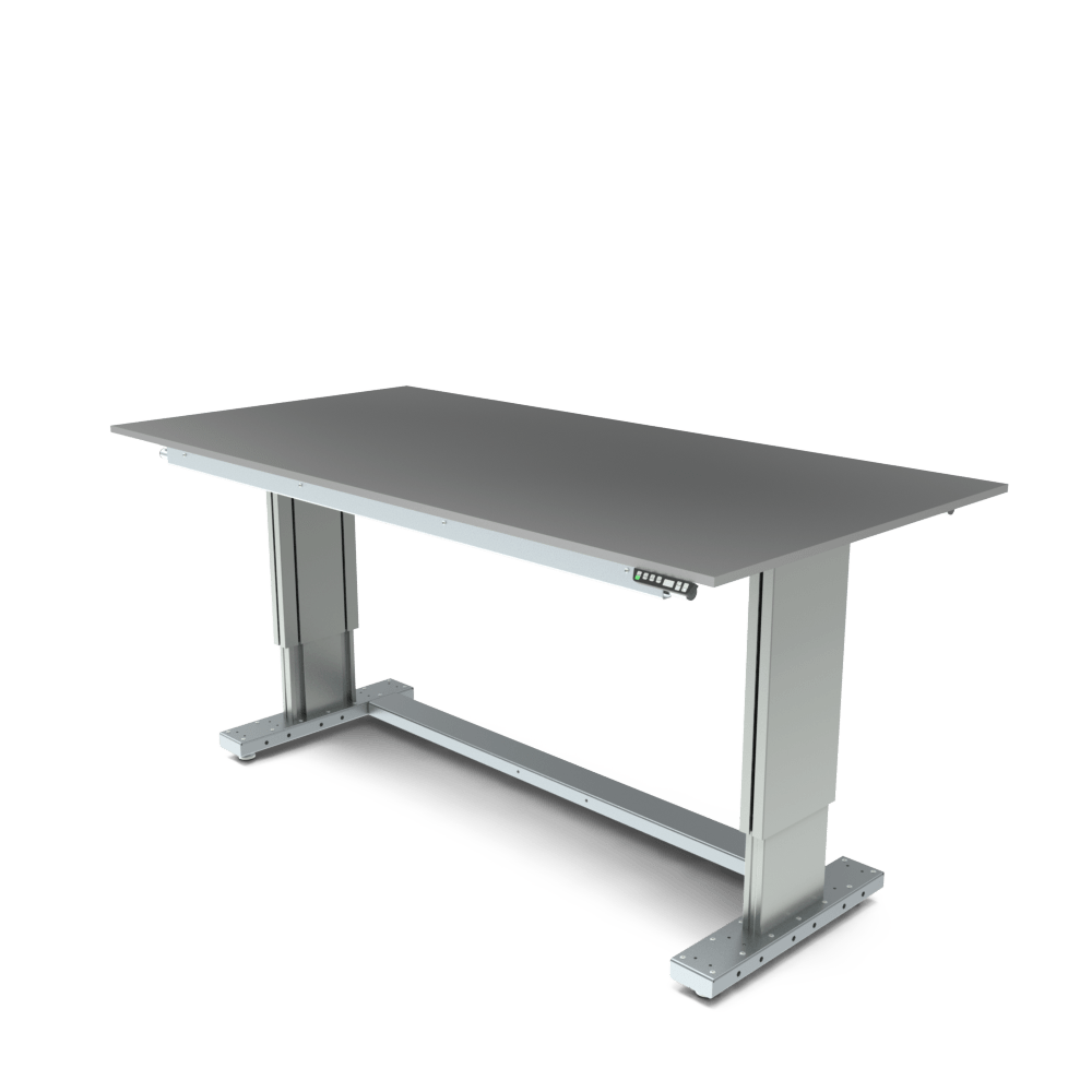 Dankzij de robuuste industriële hefkolommen beschikt de tafel over een indrukwekkend draagvermogen van 350 kg.