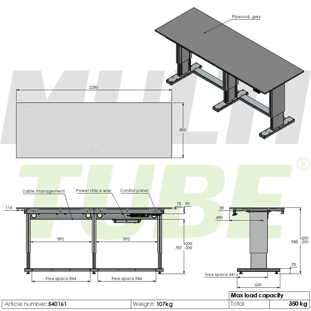 Dankzij de robuuste industriële hefkolommen beschikt de tafel over een indrukwekkend draagvermogen van 350 kg.