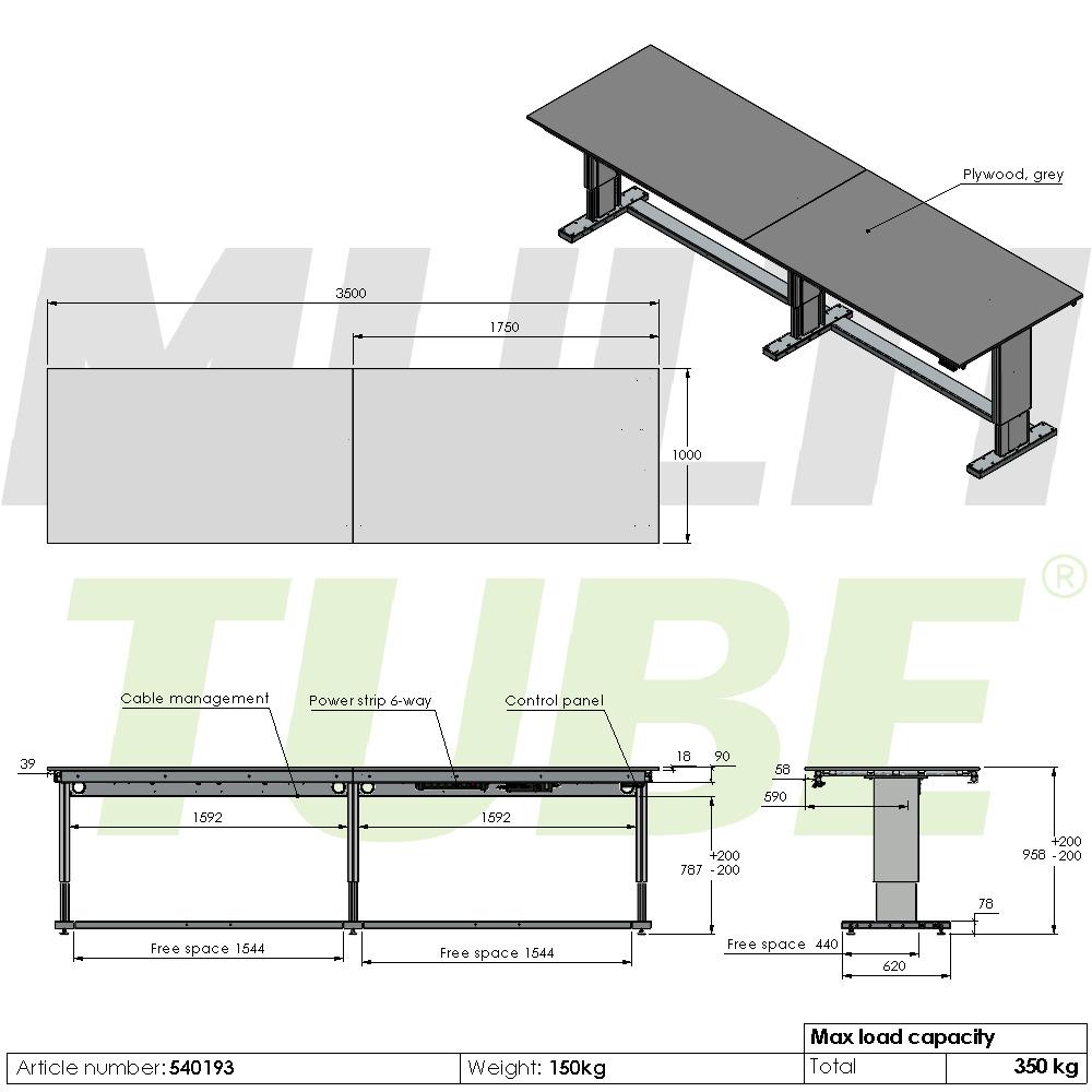 Elektrisch verstelbare werktafel, 3500x1000mm
