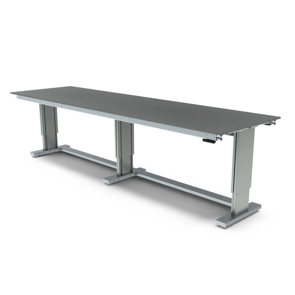 Dankzij de robuuste industriële hefkolommen beschikt de tafel over een indrukwekkend draagvermogen van 350 kg.
