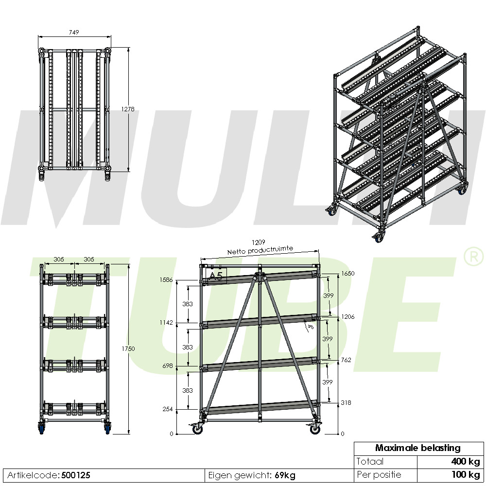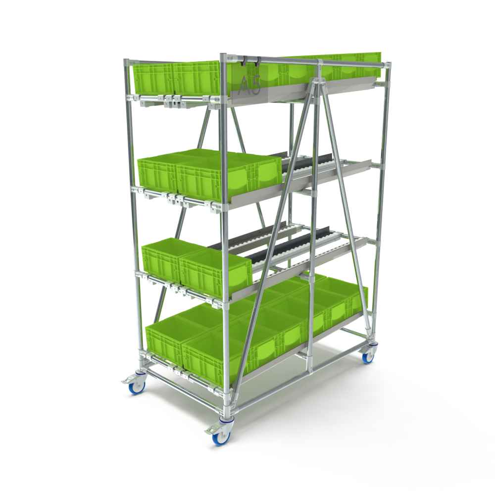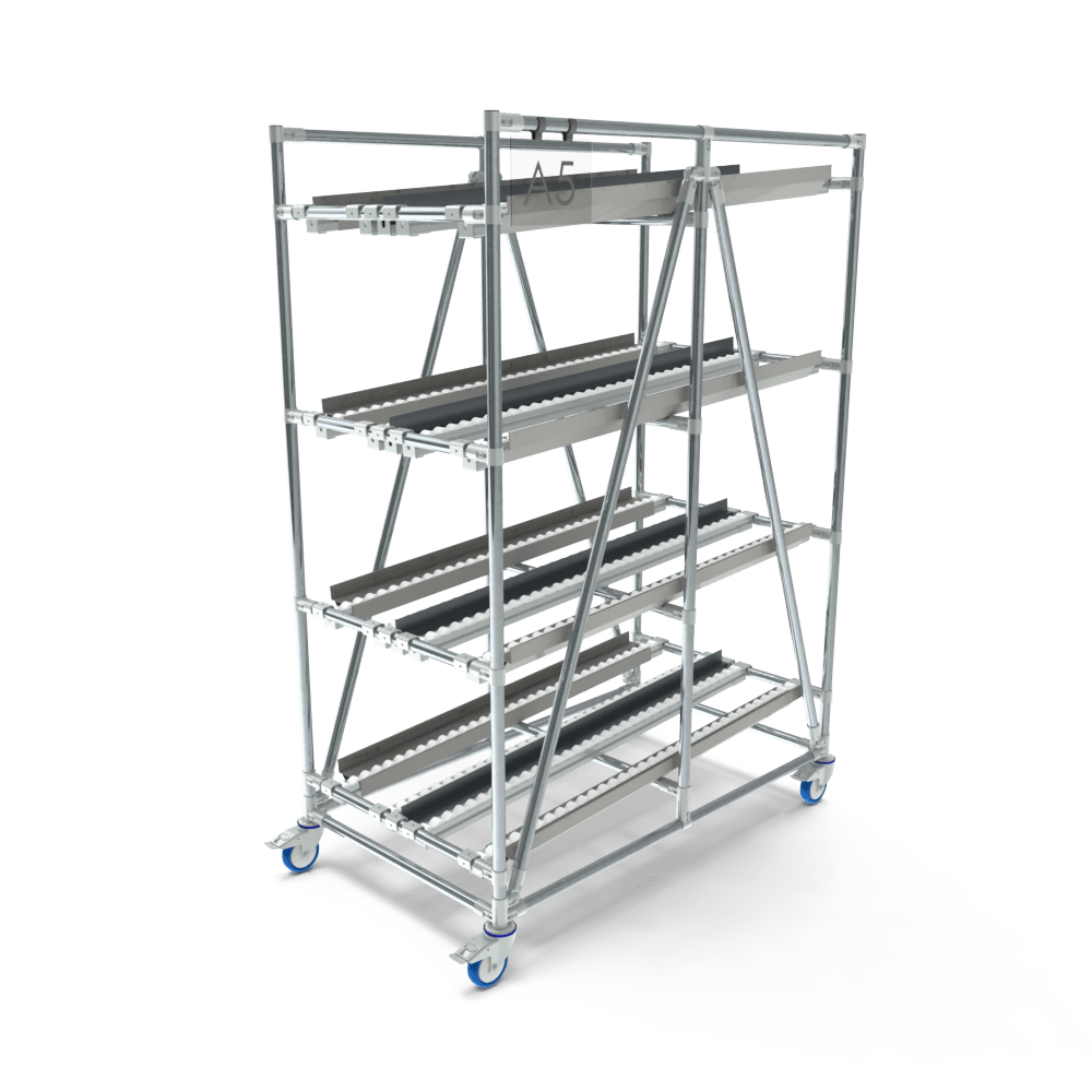 Deze doorrolstelling beschikt over twee lanes, waardoor er twee bakken naast elkaar per lane geplaatst kunnen worden. Met een maximale belasting van 400 kg en een draagvermogen van 100 kg per niveau is het flowrack stevig, betrouwbaar en klaar voor intensief gebruik. Voor extra flexibiliteit is dit flowrack uitgevoerd op wielen.
