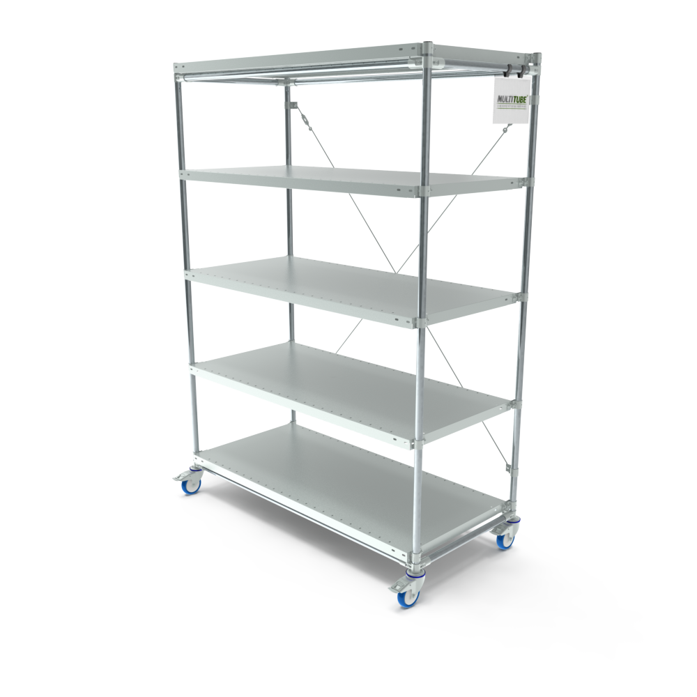Onze mobiele legbordstellingen worden standaard voorzien van 5 legborden. De legborden zijn 40 mm hoog en kunnen optioneel worden voorzien van etikethouders.