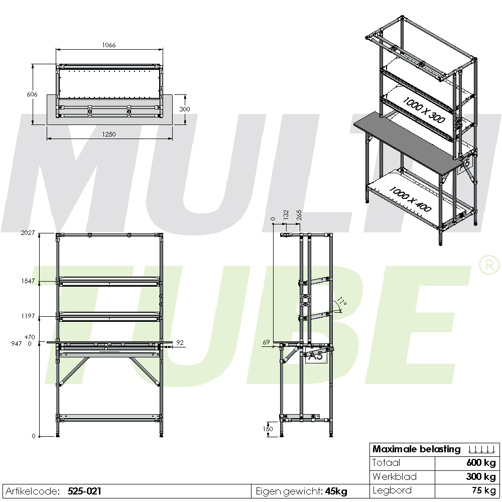 Heb je behoefte aan meer opbergruimte? Bestel eenvoudig extra legborden via onze webshop. Elk legbord heeft een draagvermogen van 75 kilo, ideaal voor het opslaan van onderdelen, gereedschappen of verpakkingsmateriaal.