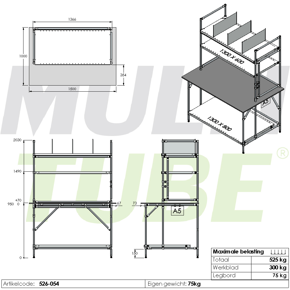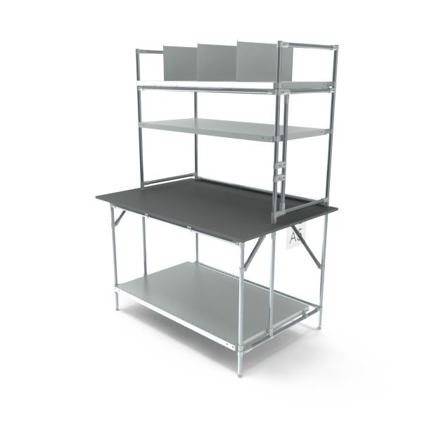 Onder én boven het werkblad bevindt zich een stevig legbord, ideaal voor het opbergen van dozen, bakken en andere benodigdheden. Je kunt eenvoudig meerdere extra legborden toevoegen voor nog meer opbergruimte. Elk legbord is belastbaar tot 75 kilo, waardoor je veilig onderdelen, gereedschappen of verpakkingsmateriaal kunt opbergen en je werkplek overzichtelijk blijft.