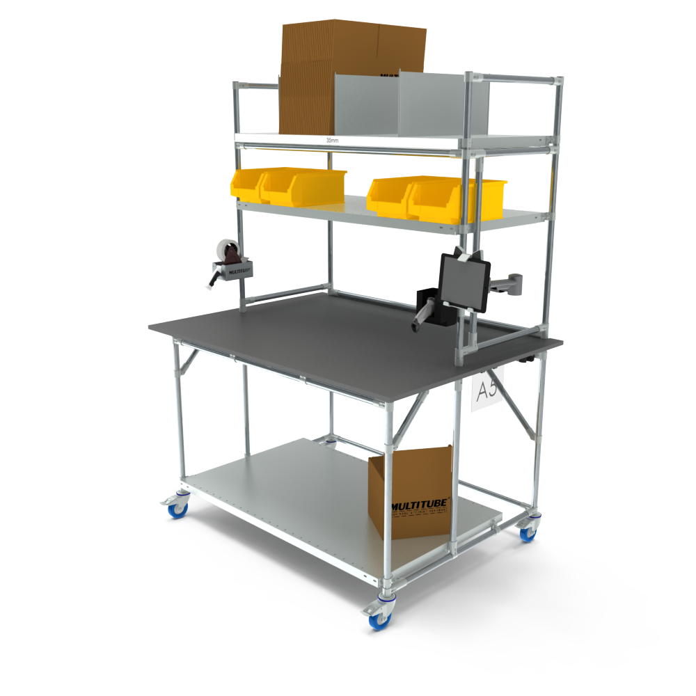 Met onze online configurator stel je eenvoudig zelf je inpaktafel samen: bepaal de breedte en diepte van het werkblad, kies de wielconfiguratie en voeg accessoires of andere opties toe. Zo ontwerp je een inpaktafel die helemaal aansluit bij jouw wensen.