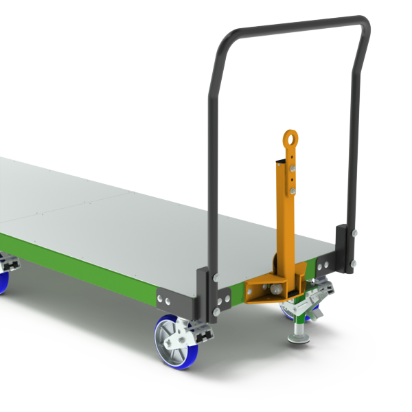 De plateauwagen is speciaal ontworpen voor gebruik met tuggers en elektrische voertuigen, waardoor hij naadloos integreert in moderne transportlijnen. Door de stevige constructie blijft de wagen betrouwbaar en eenvoudig verplaatsbaar, zelfs bij zware of omvangrijke ladingen.