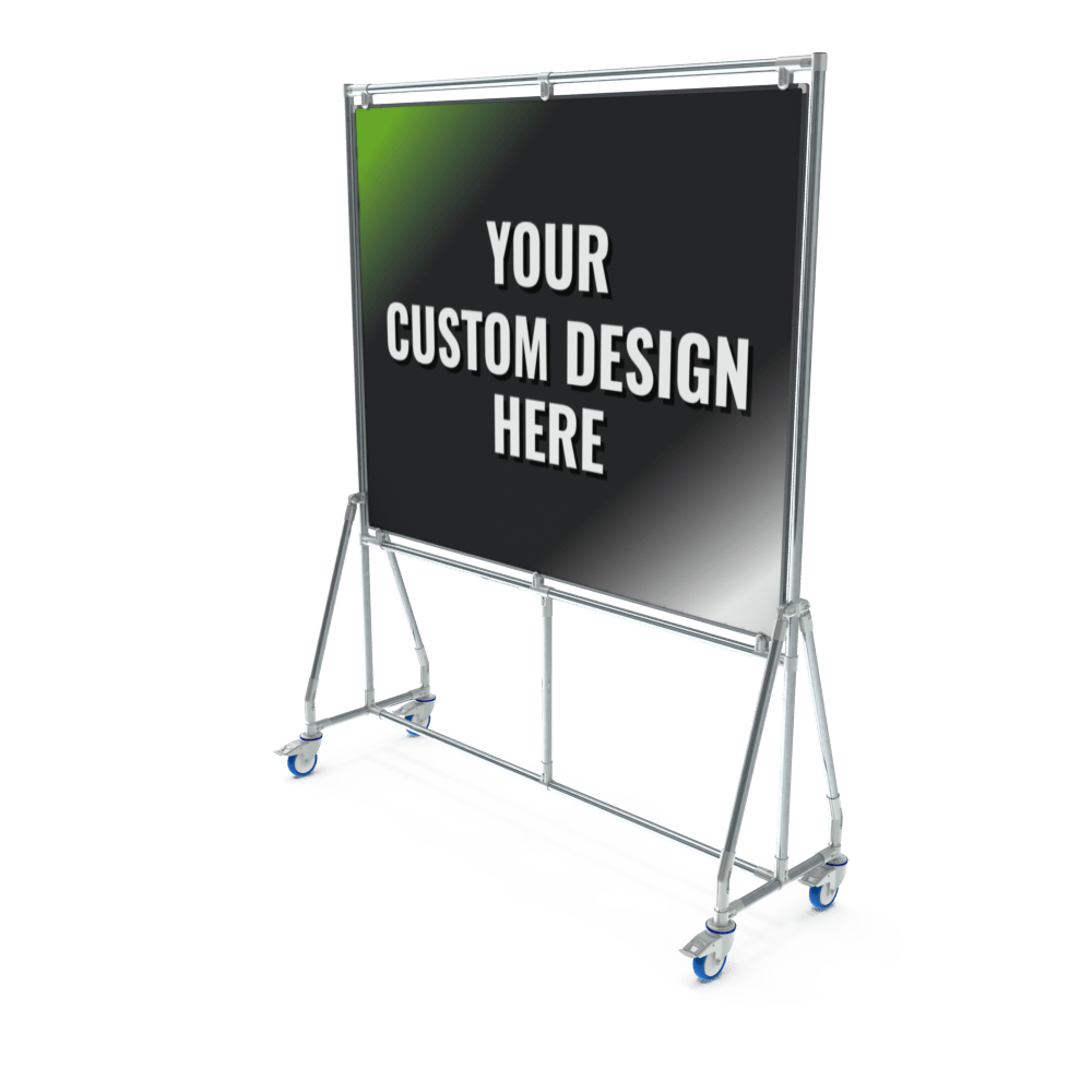 Verrijdbaar whiteboard met een magnetisch gelakt stalen schrijfoppervlak en een aluminium frame. Zowel de voor- als achterkant kunnen worden voorzien van een bedrukking.