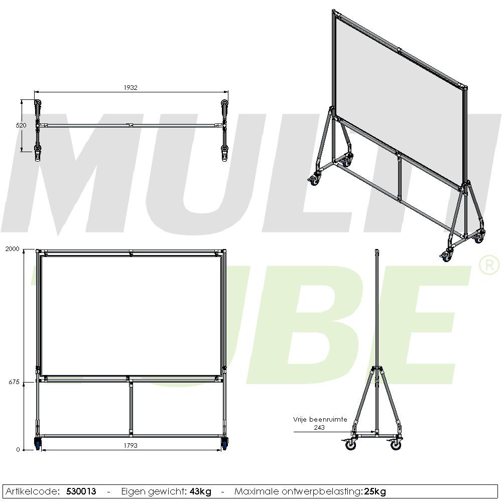 verrijdbaar whiteboard, enkelzijdig bedrukt