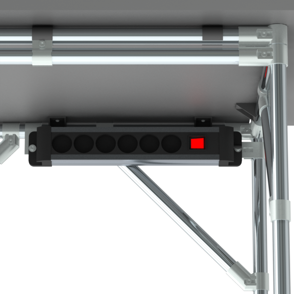 To gniazdo zapewnia miejsce na 6 wtyczek i jest idealnie dopasowane do naszego systemu konstrukcji rurowych. W zestawie znajduje się zestaw montażowy ułatwiający instalację. Długość kabla gniazda wynosi 3 metry.