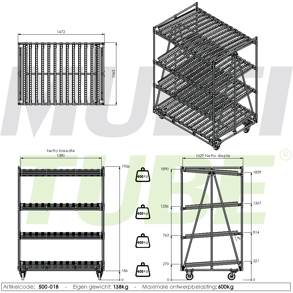 Mobilny regał przepływowy, prosty, 1380x1030mm