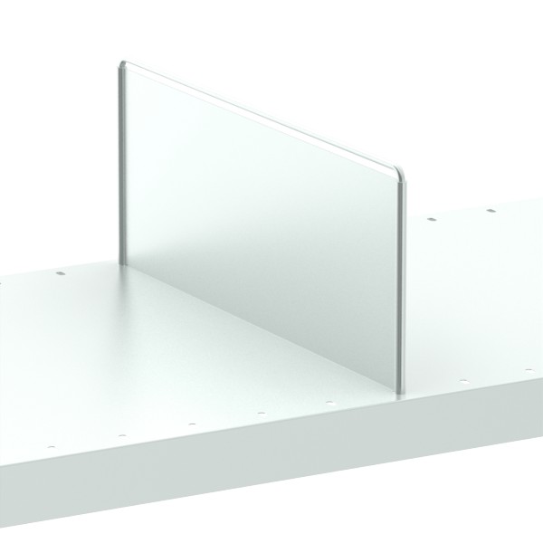 Ocynkowane przegrody pośrednie do oddzielania towarów lub zmniejszania miejsc na półkach. Wysokość 150 mm i nadaje się do półek o głębokości 400 mm.