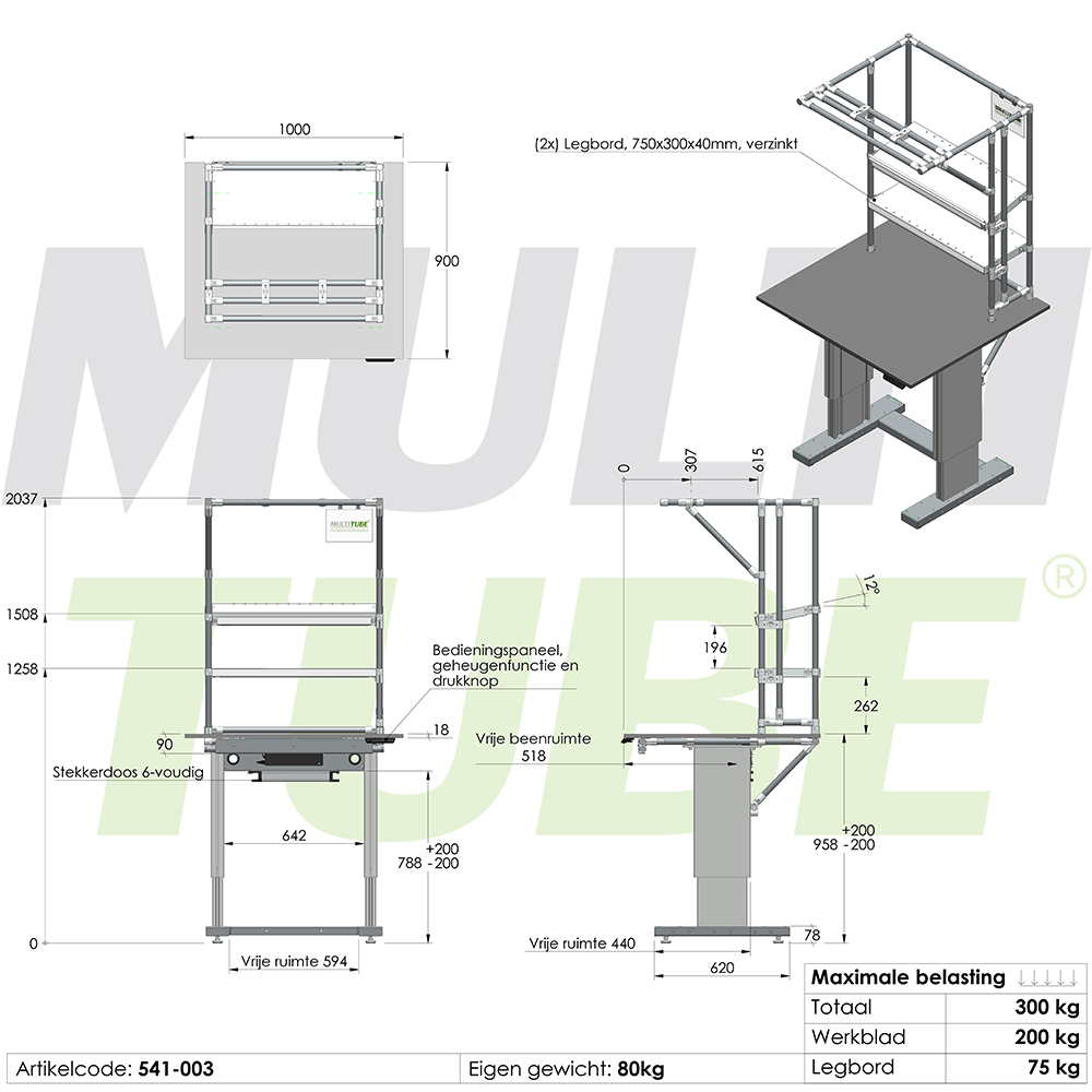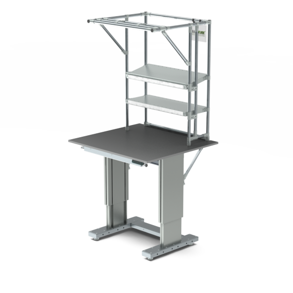 Dzięki wytrzymałym, przemysłowym kolumnom podnoszącym elektrycznie regulowane stanowisko robocze oferuje nośność do 300 kg, łącznie z półkami. Dla jeszcze większej funkcjonalności stanowisko robocze zostało wyposażone w dwie półki (każda o nośności do 75 kg) oraz zintegrowaną listwę zasilającą z 6 gniazdami.