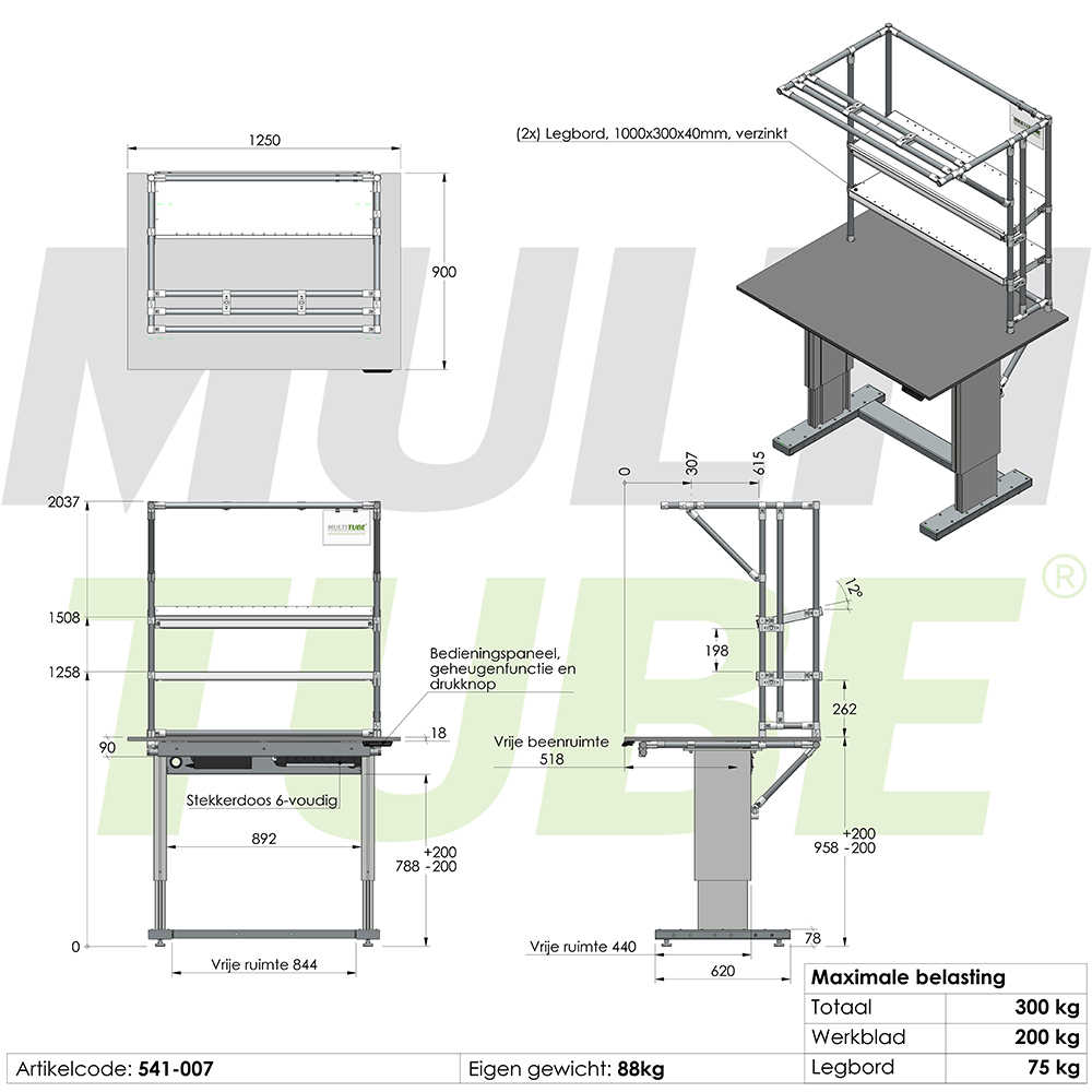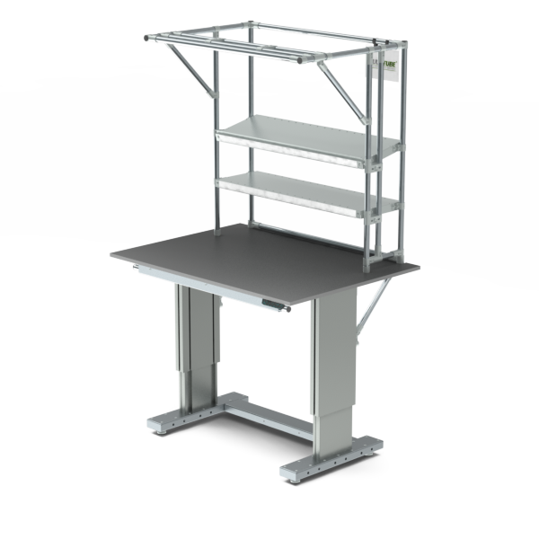 Dzięki wytrzymałym, przemysłowym kolumnom podnoszącym elektrycznie regulowane stanowisko robocze oferuje nośność do 300 kg, łącznie z półkami. Dla jeszcze większej funkcjonalności stanowisko robocze zostało wyposażone w dwie półki (każda o nośności do 75 kg) oraz zintegrowaną listwę zasilającą z 6 gniazdami.