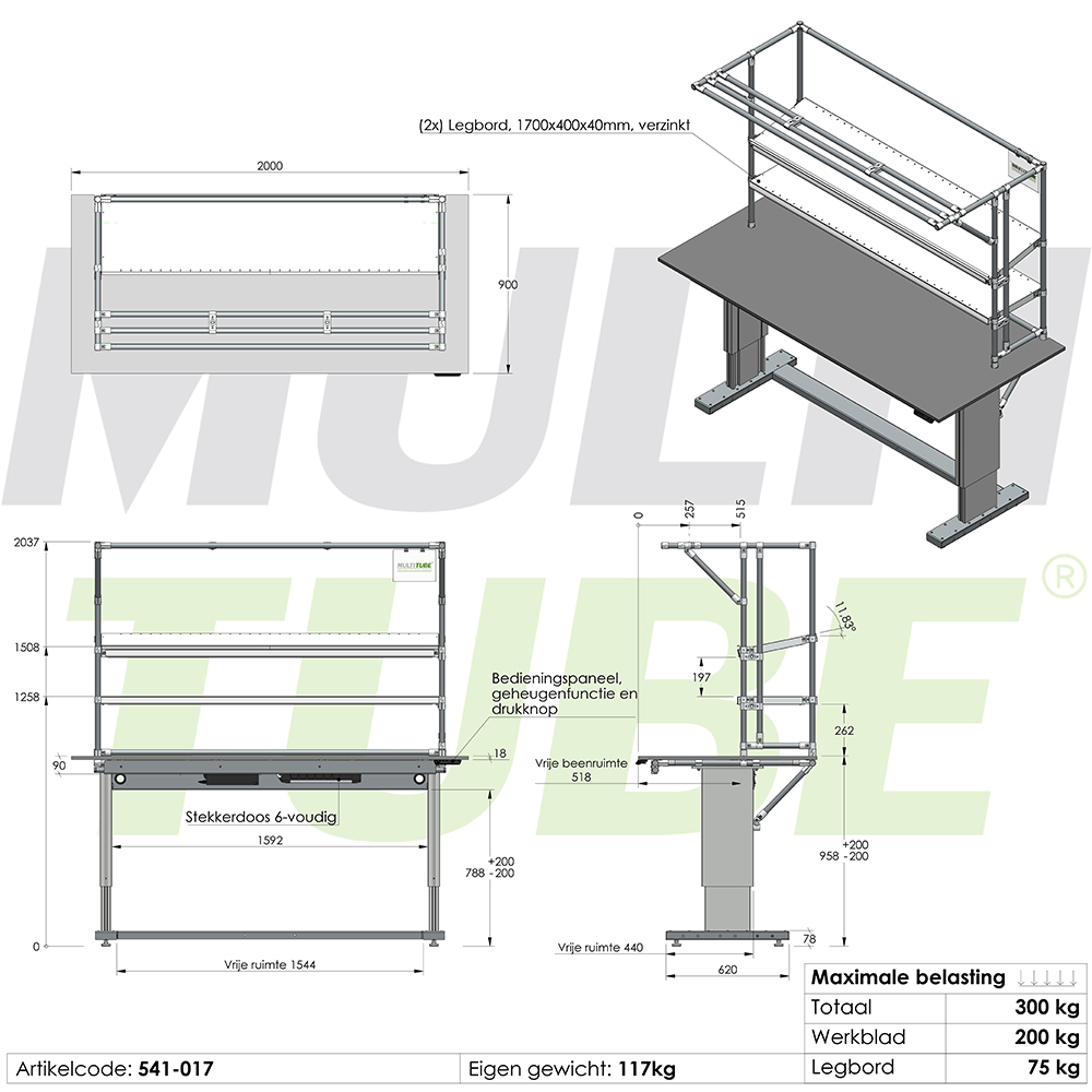 Dzięki wytrzymałym, przemysłowym kolumnom podnoszącym elektrycznie regulowane stanowisko robocze oferuje nośność do 300 kg, łącznie z półkami. Dla jeszcze większej funkcjonalności stanowisko robocze zostało wyposażone w dwie półki (każda o nośności do 75 kg) oraz zintegrowaną listwę zasilającą z 6 gniazdami.