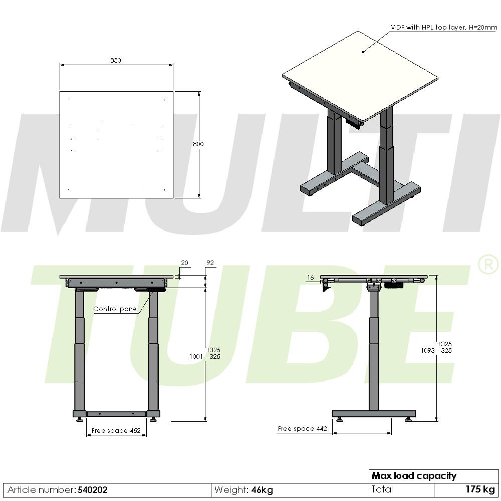 Stanowisko robocze regulowane elektrycznie, 850x800mm