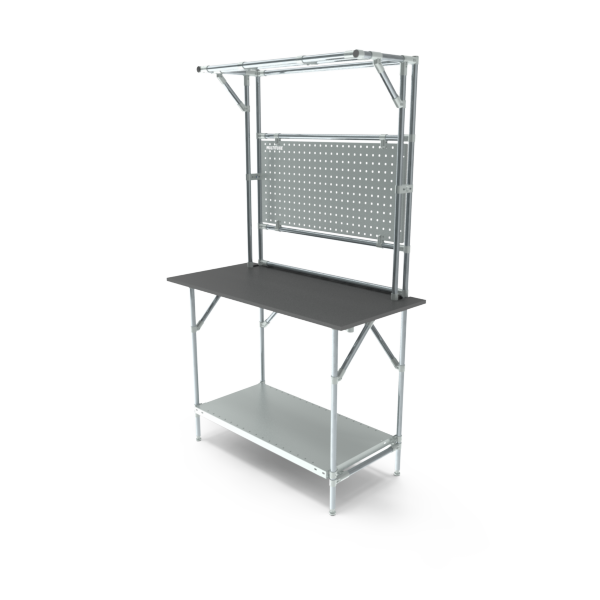 Pod blatem znajduje się solidna półka, a możliwość dodania kolejnych półek umożliwia wygodne przechowywanie części, narzędzi lub materiałów opakowaniowych. Każda półka może utrzymać do 75 kg.